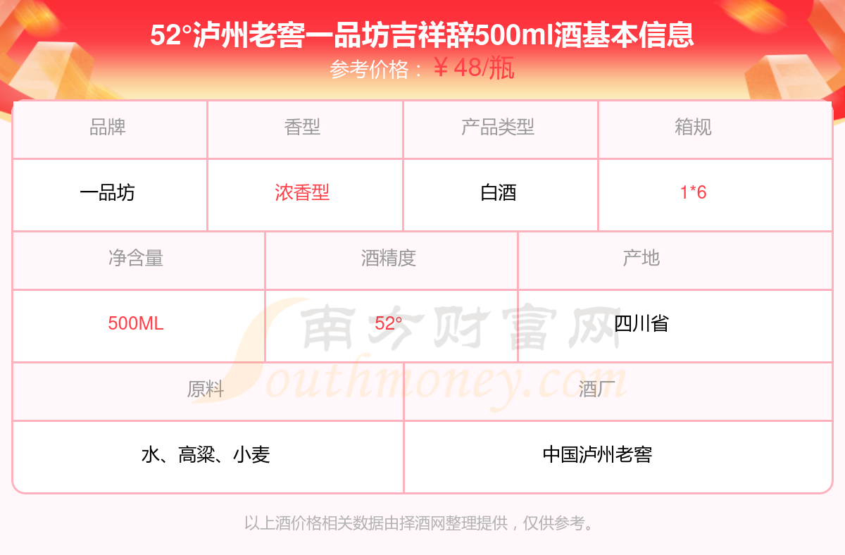 52°泸州老窖一品坊吉祥辞500ml基本信息