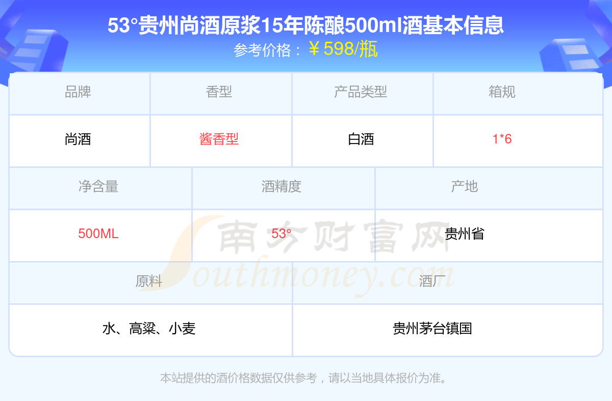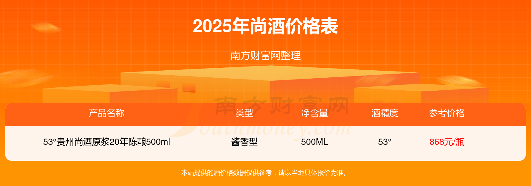 2025年53°贵州尚酒原浆15年陈酿500ml酒价格表查询