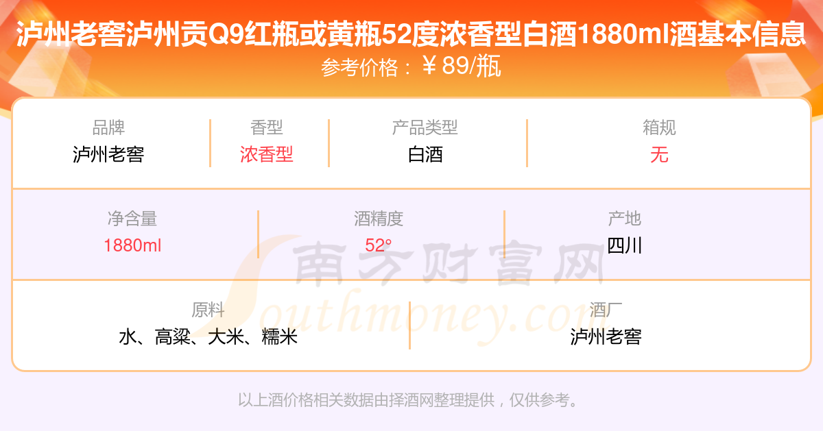 泸州老窖泸州贡Q9红瓶或黄瓶52度浓香型白酒1880ml基本信息