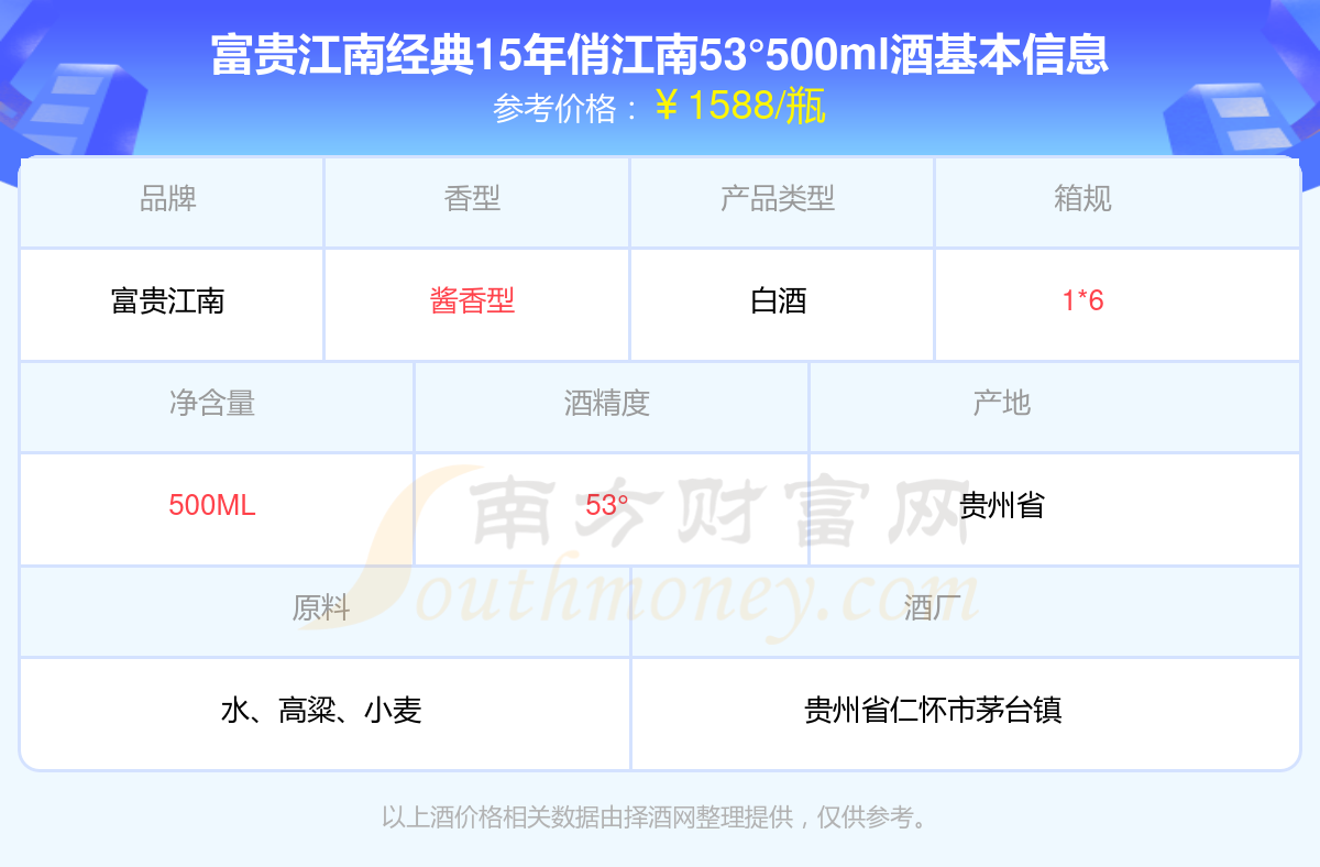 富贵江南经典15年俏江南53°500ml基本信息