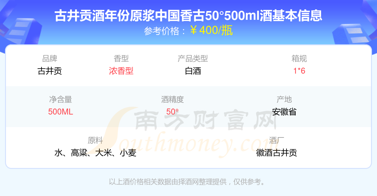 古井贡酒年份原浆中国香古50°500ml基本信息