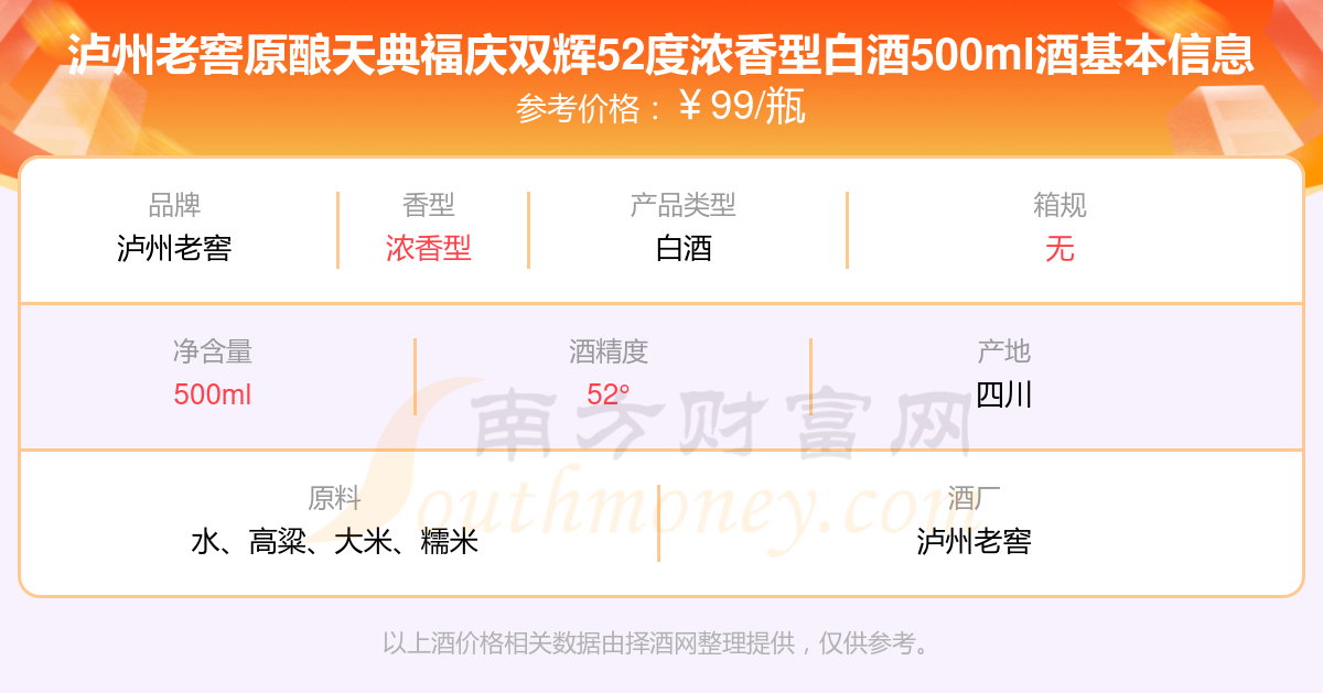 泸州老窖原酿天典福庆双辉52度浓香型白酒500ml基本信息