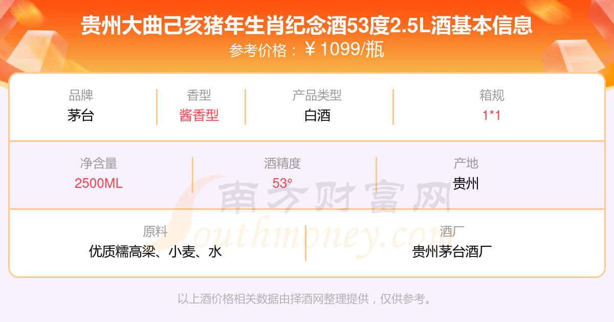 贵州大曲己亥猪年生肖纪念酒53度2.5L基本信息