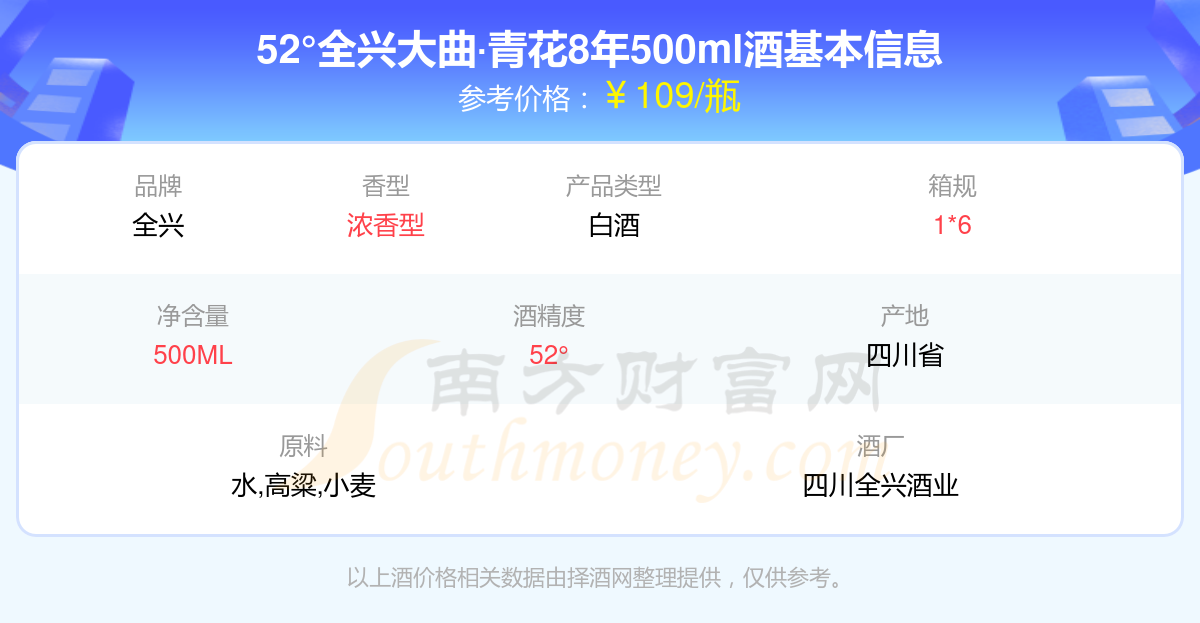 52°全兴大曲·青花8年500ml基本信息