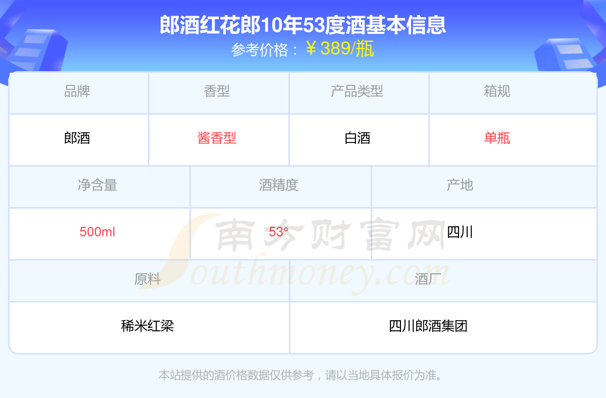 郎酒红花郎10年53度基本信息