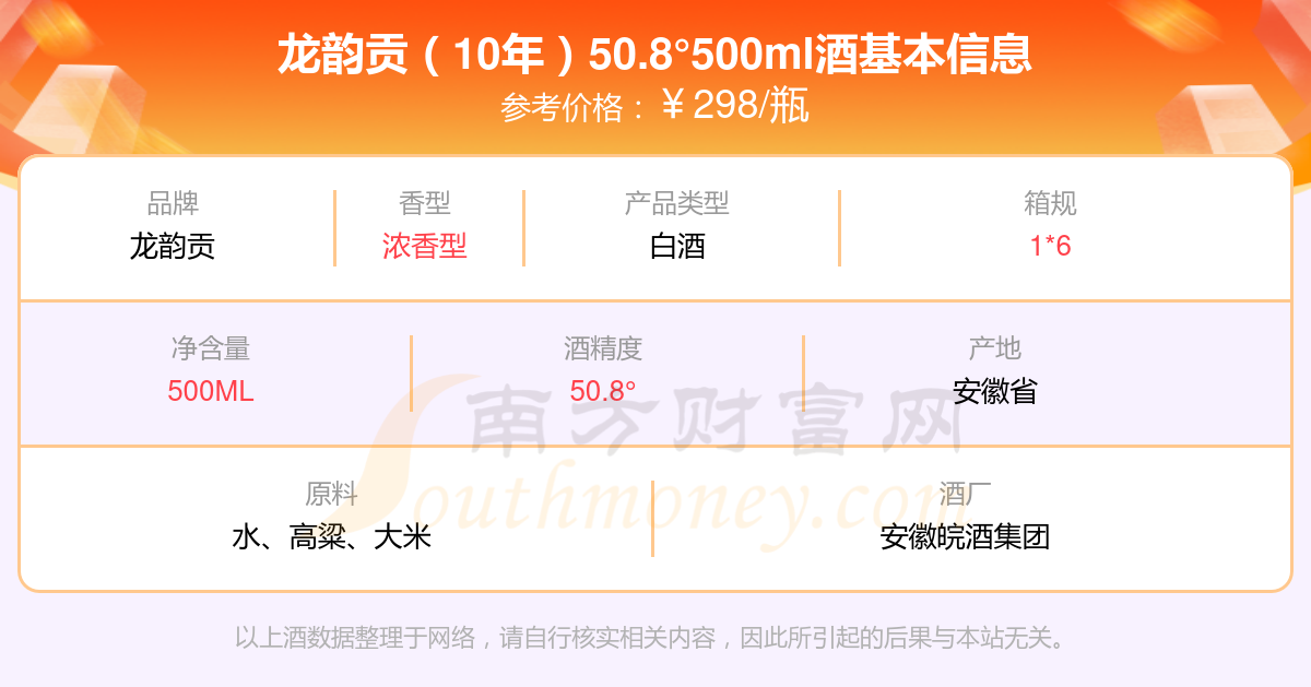 龙韵贡(10年)50.8°500ml基本信息