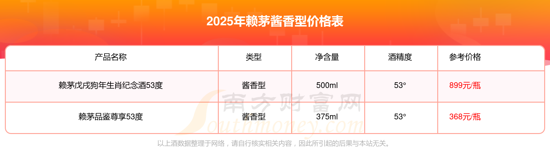 赖茅戊戌狗年生肖纪念酒53度参考价899元/瓶、赖茅品鉴尊享53度参考价368元/瓶。