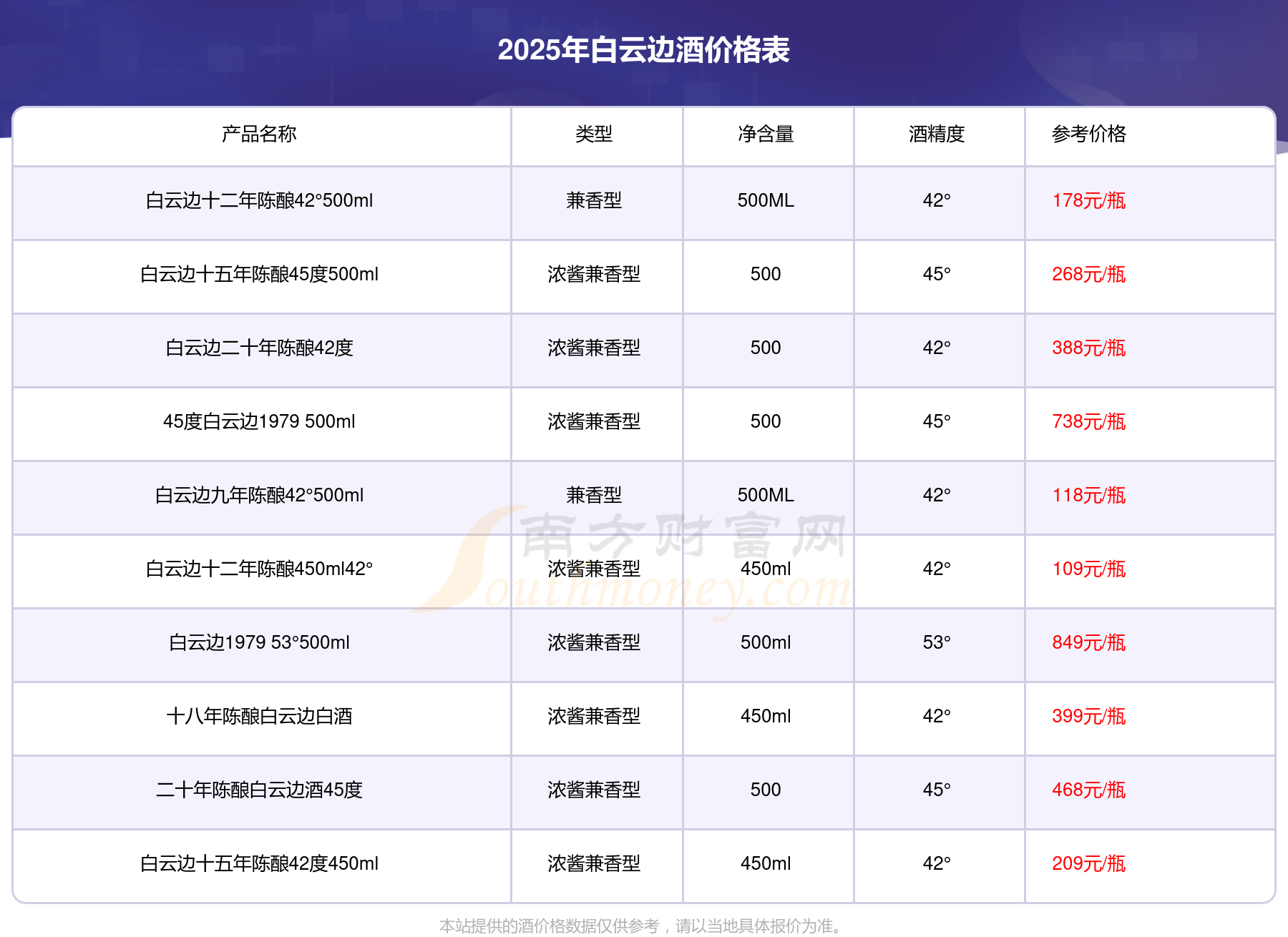 本站提供的酒价格数据仅供参考,请以当地具体报价为准。