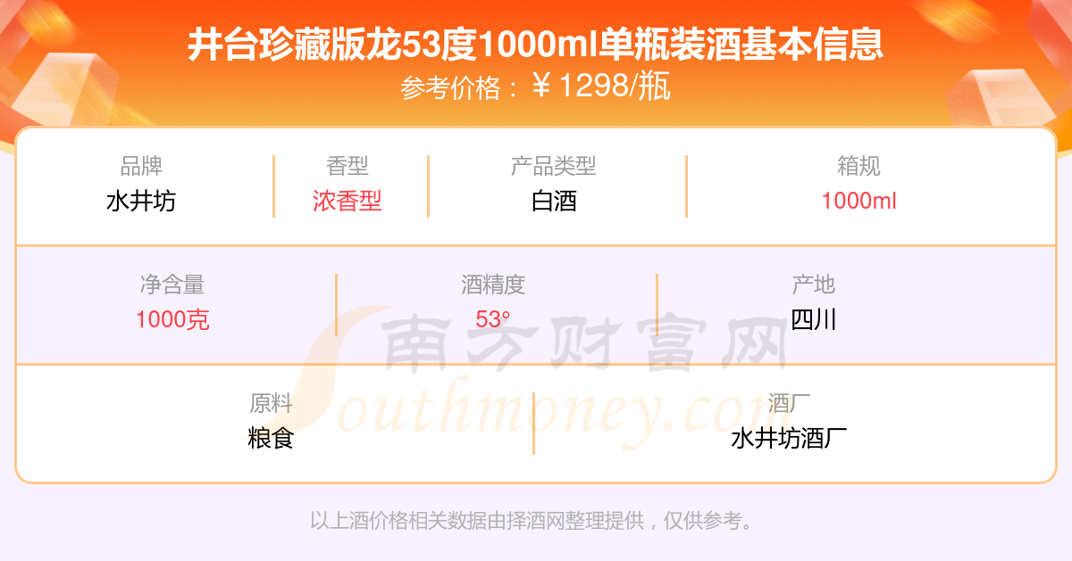 井台珍藏版龙53度1000ml单瓶装基本信息