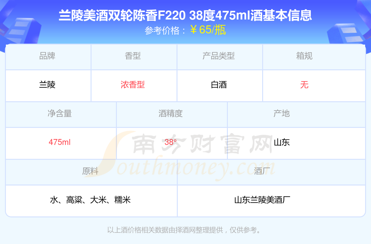 兰陵美酒双轮陈香F220 38度475ml基本信息