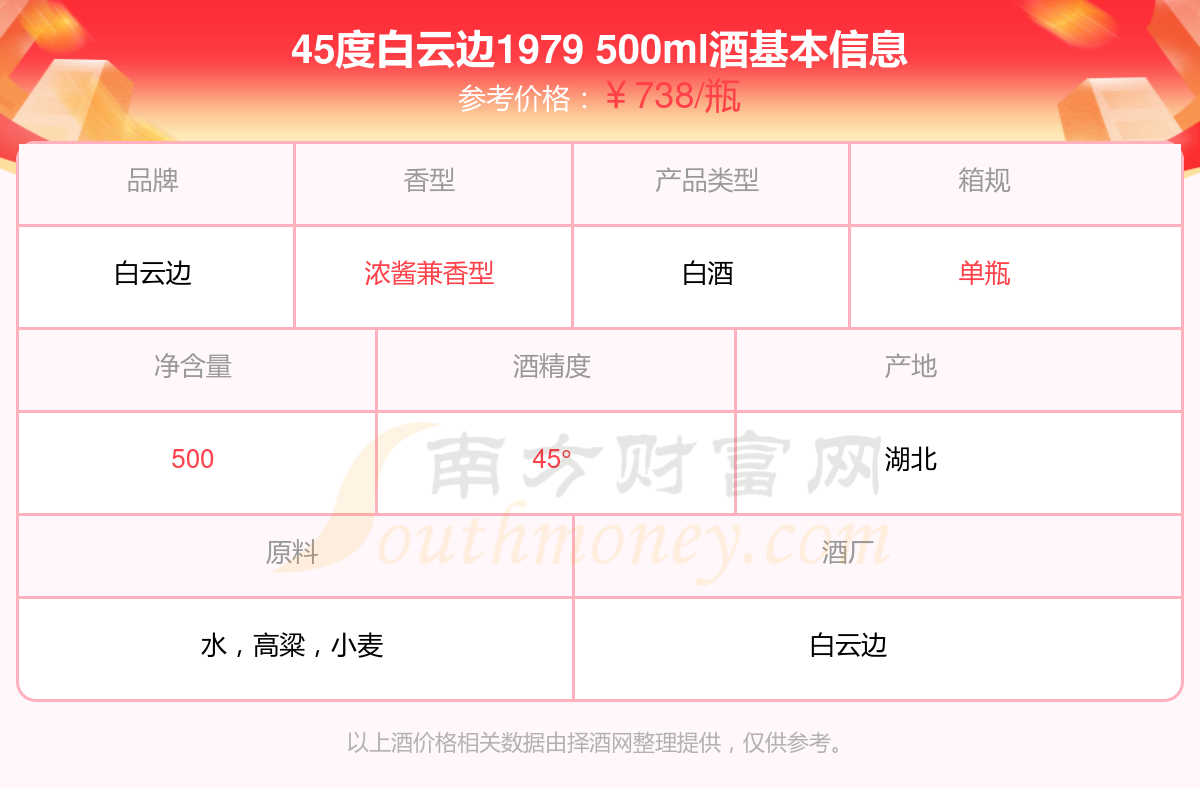 45度白云边1979 500ml基本信息