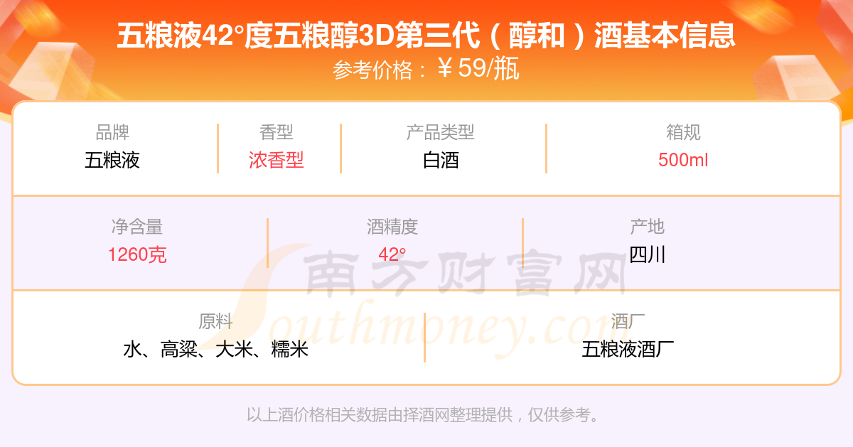 五粮液42°度五粮醇3D第三代(醇和)基本信息