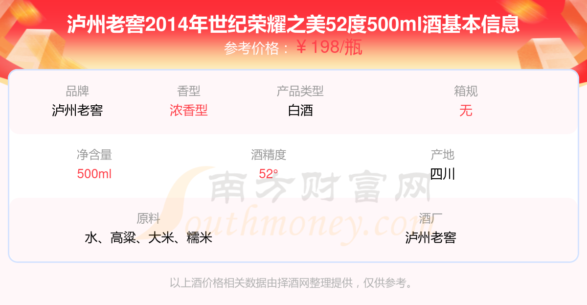 泸州老窖2014年世纪荣耀之美52度500ml基本信息