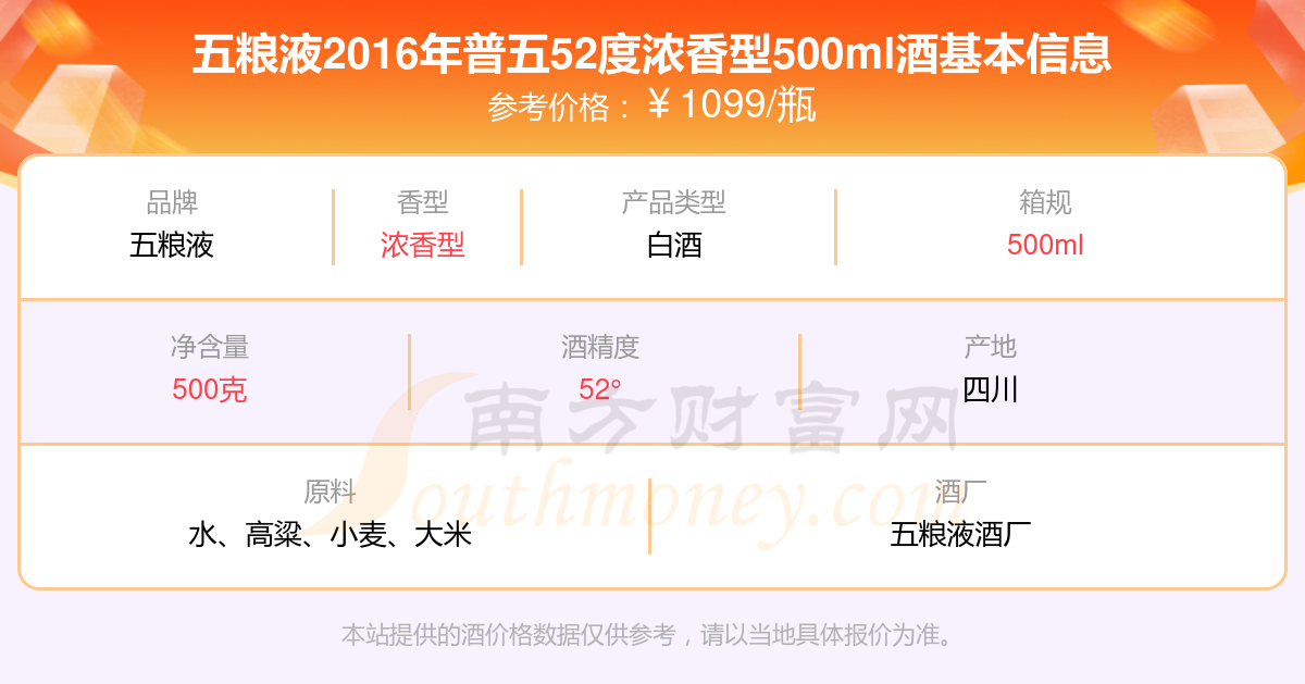 五粮液2016年普五52度浓香型500ml基本信息