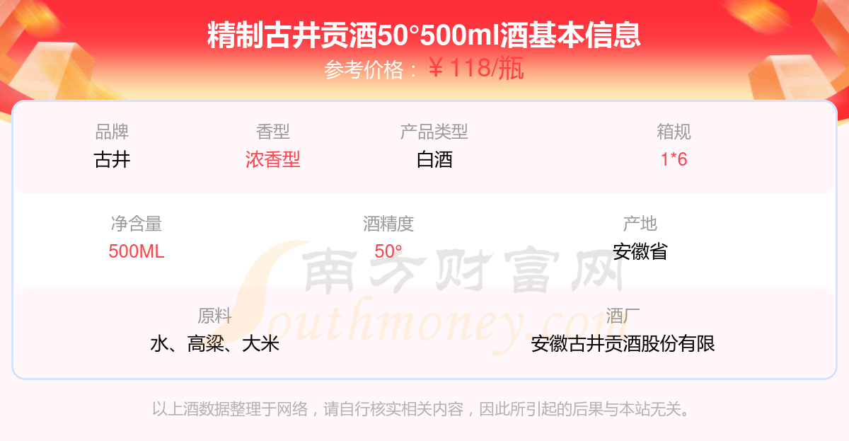 精制古井贡酒50°500ml基本信息