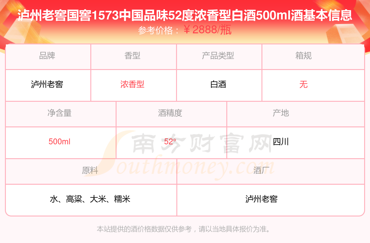 泸州老窖国窖1573中国品味52度浓香型白酒500ml基本信息