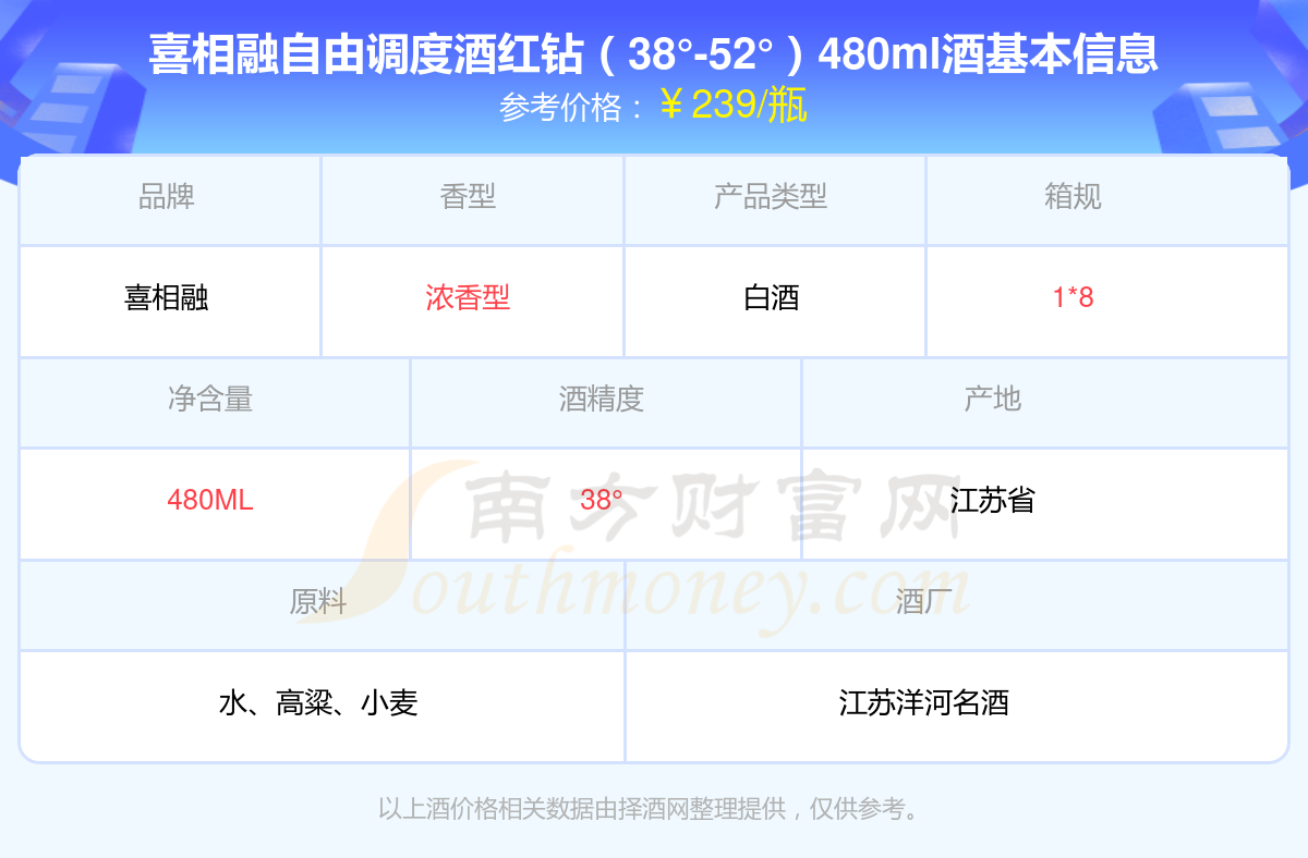喜相融自由调度酒红钻(38°-52°)480ml基本信息