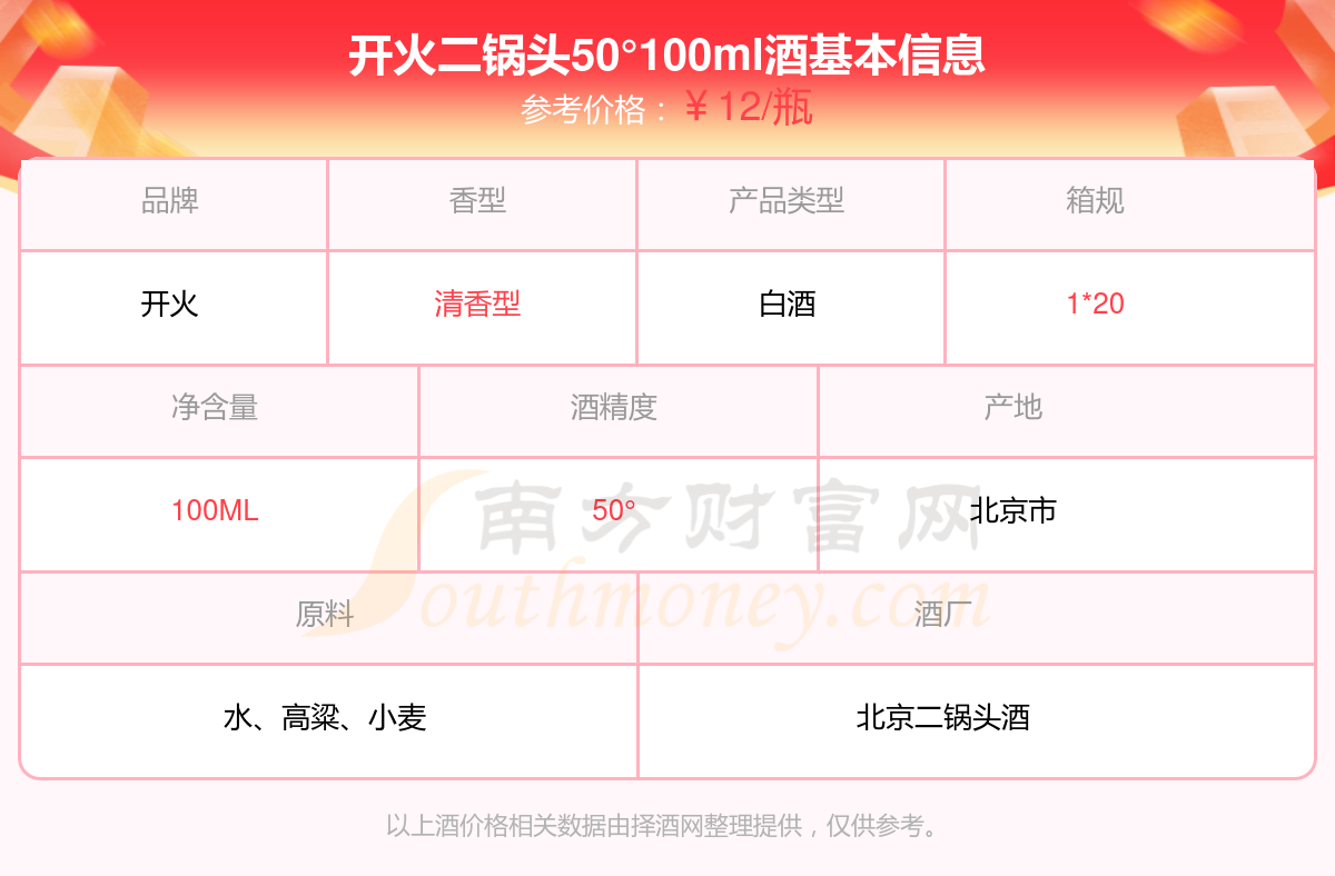 开火二锅头50°100ml基本信息