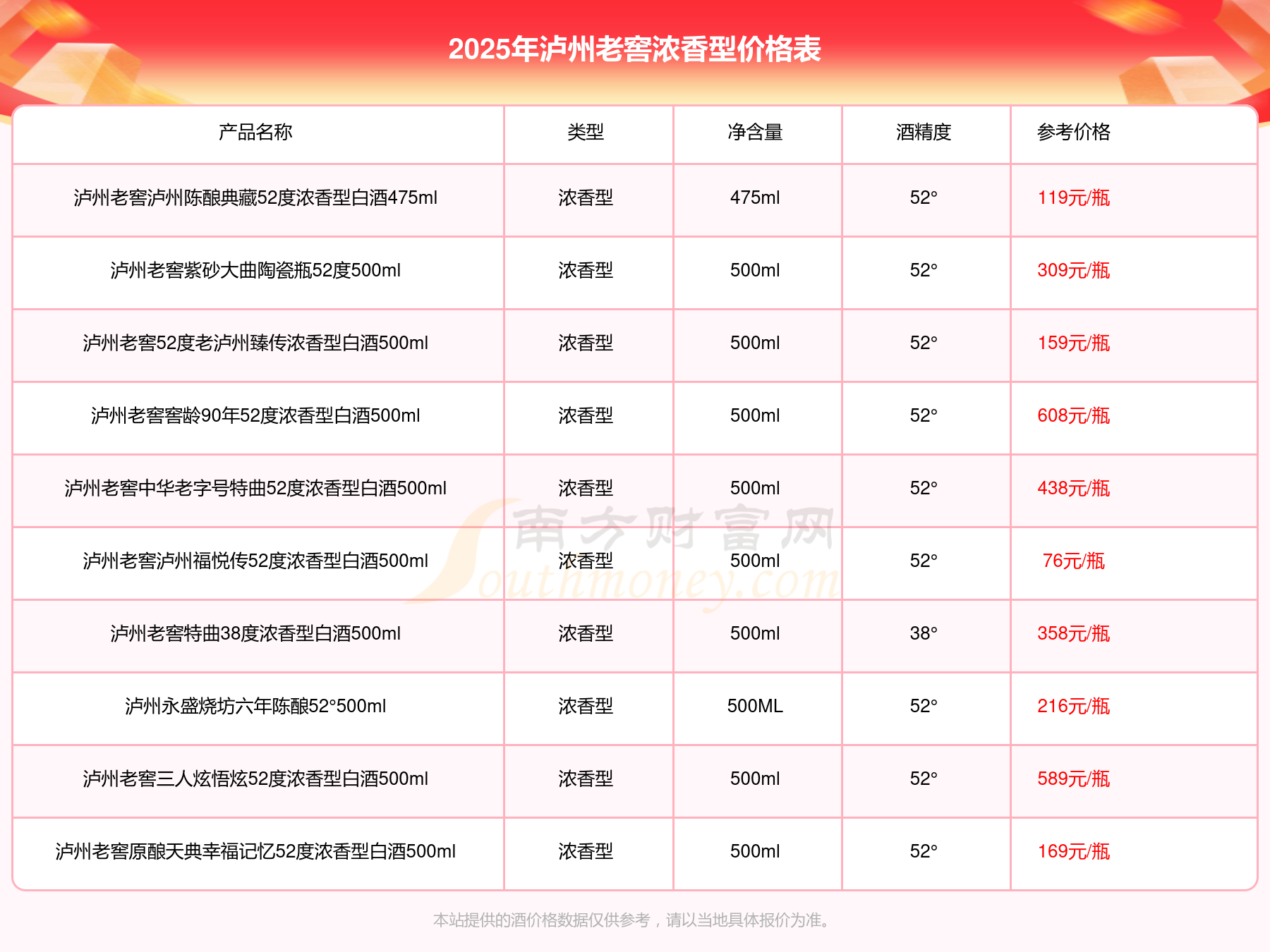 泸州老窖国窖1573春酿鼠兆丰年E 55度参考价17999元/瓶、泸州老窖国窖1573生命中的那坛酒55度014参考价9999元/瓶、泸州老窖国窖1573春酿鼠兆丰年A 55度参考价5088元/瓶、泸州老窖国窖1573生命中的那坛酒55度013浓香型白酒1000ml参考价4988元/瓶、泸州老窖国窖1573生命中的那坛酒55度009 1000ml参考价4288元/瓶。