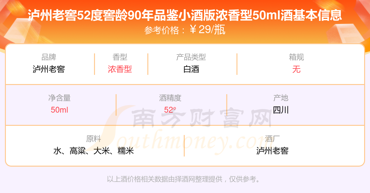 泸州老窖52度窖龄90年品鉴小酒版浓香型50ml基本信息
