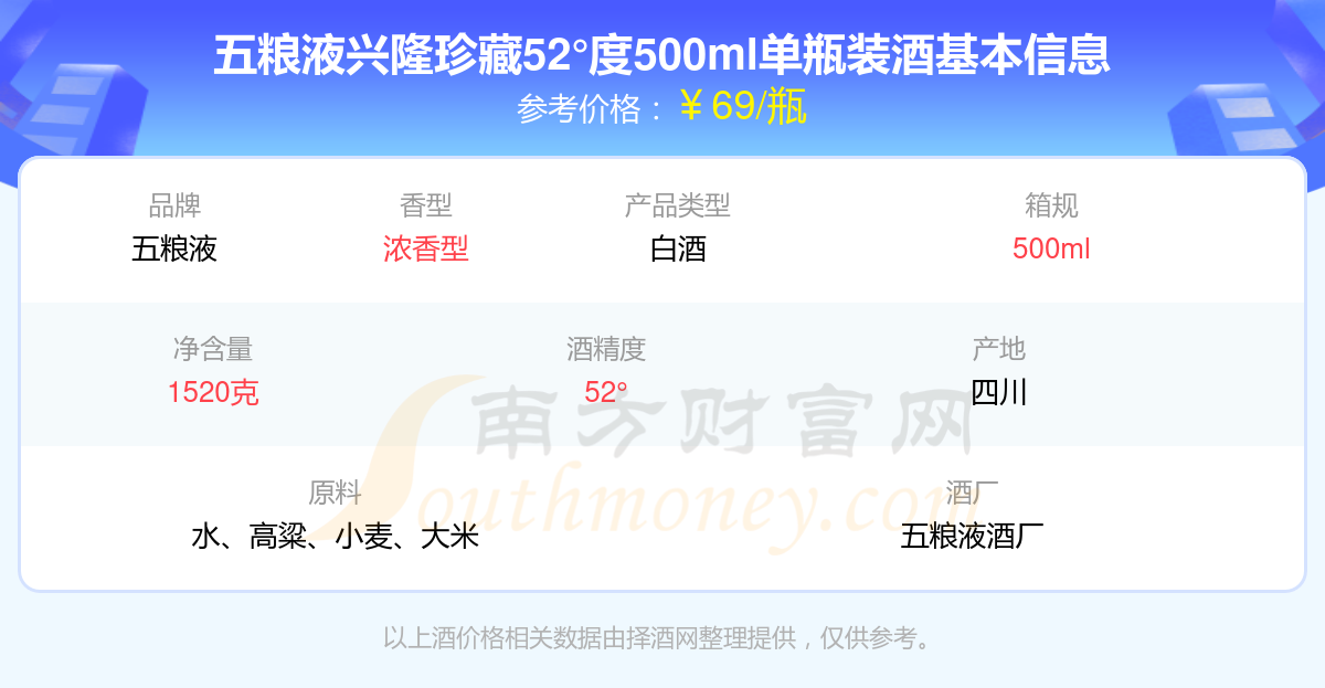 五粮液兴隆珍藏52°度500ml单瓶装基本信息