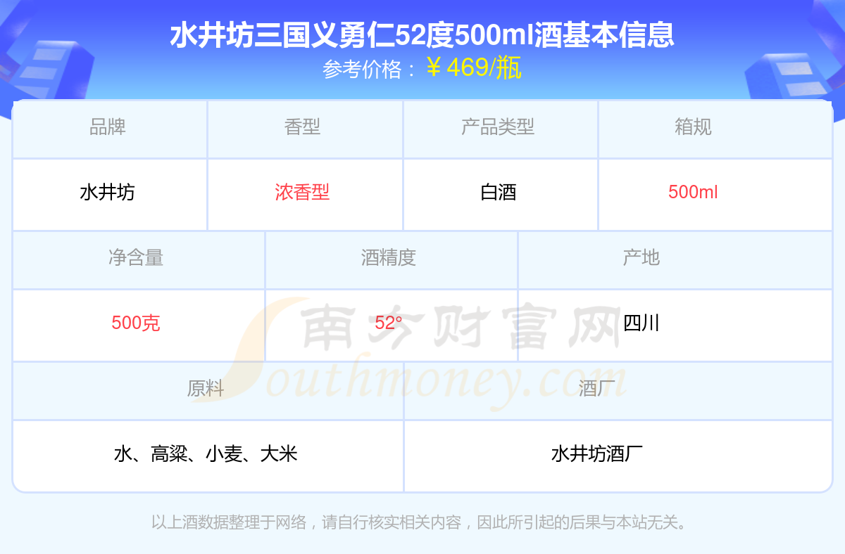 水井坊三国义勇仁52度500ml基本信息