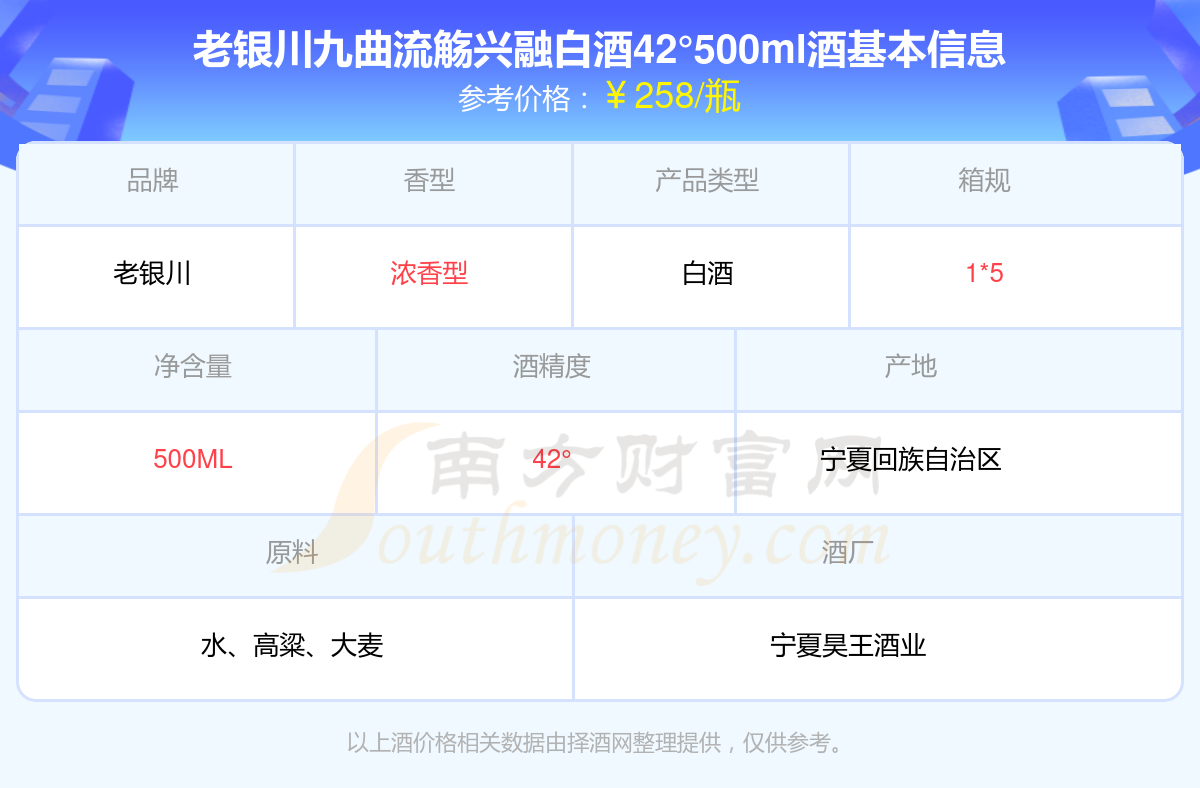 老银川九曲流觞兴融白酒42°500ml基本信息