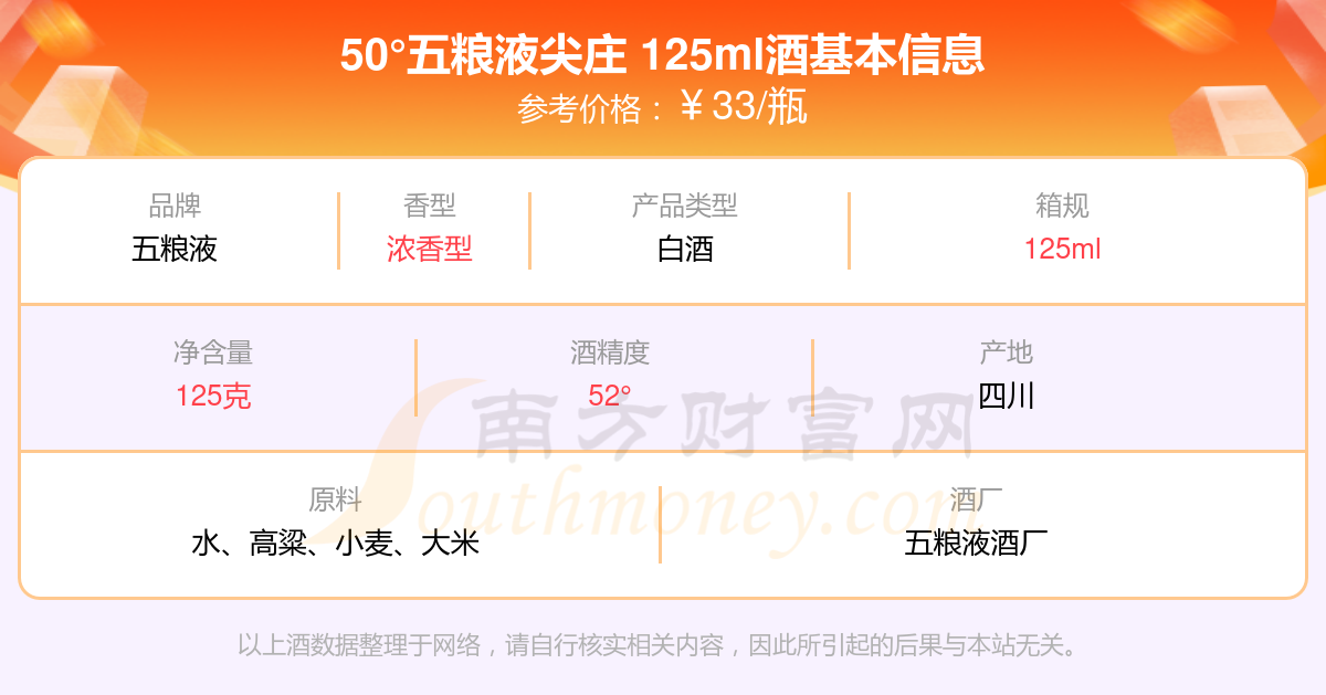 50°五粮液尖庄 125ml基本信息