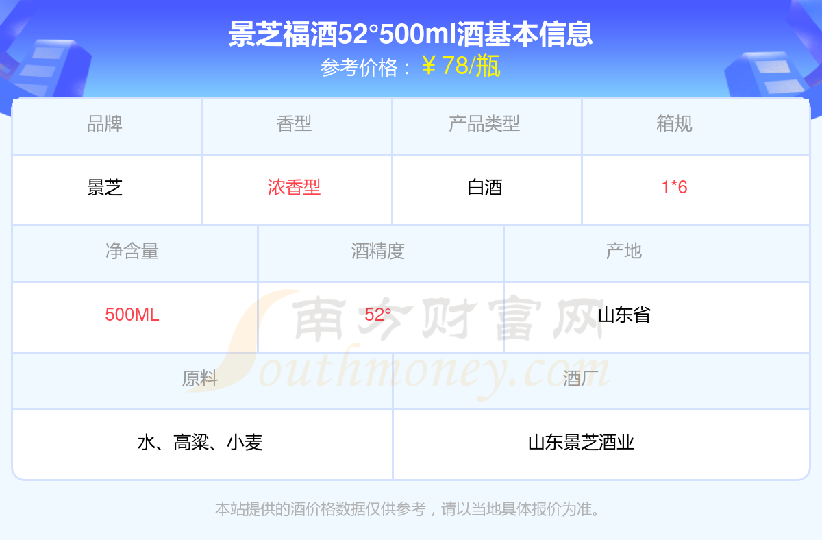 景芝福酒52°500ml基本信息