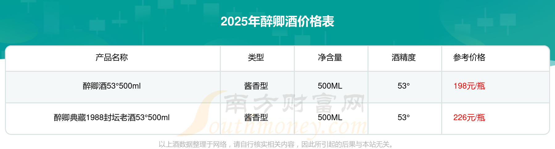 2025年,醉卿典藏1988封坛老酒53°500ml、醉卿酒53°500ml等醉卿酒价格如下:醉卿典藏1988封坛老酒53°500ml参考价226元/瓶、醉卿酒53°500ml参考价198元/瓶。