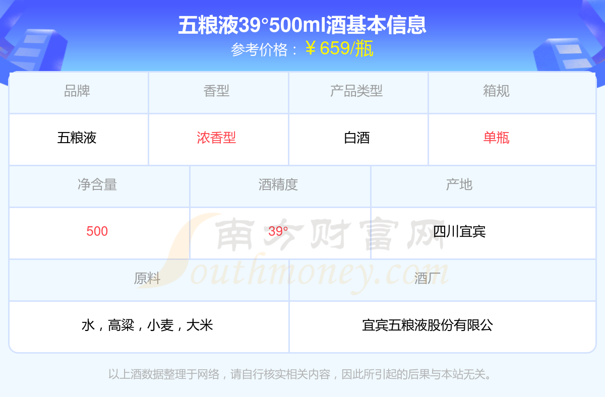 五粮液39°500ml基本信息