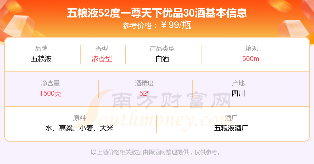 五粮液52度一尊天下优品30基本信息
