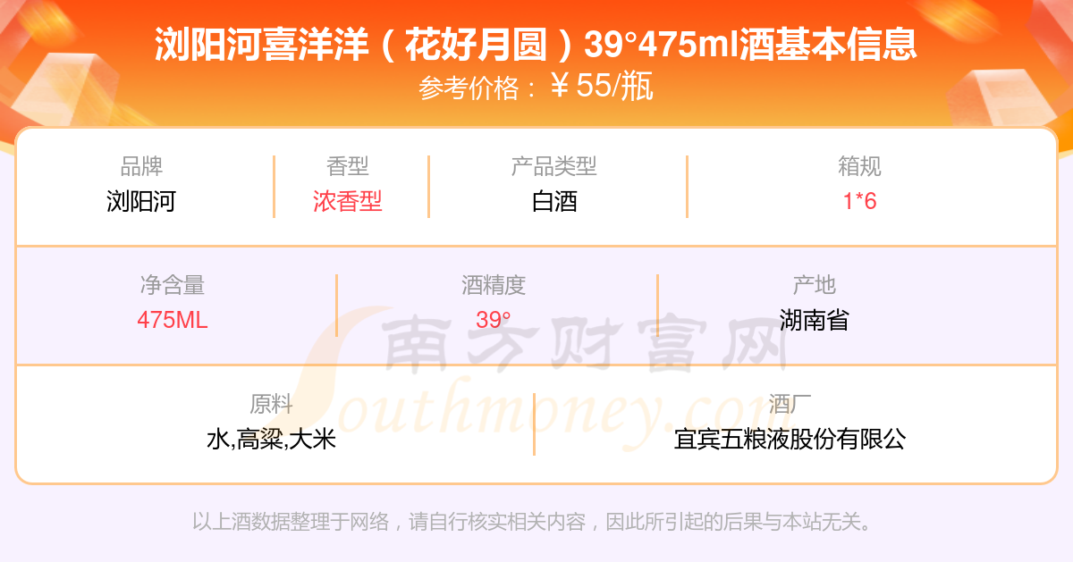 浏阳河喜洋洋(花好月圆)39°475ml基本信息