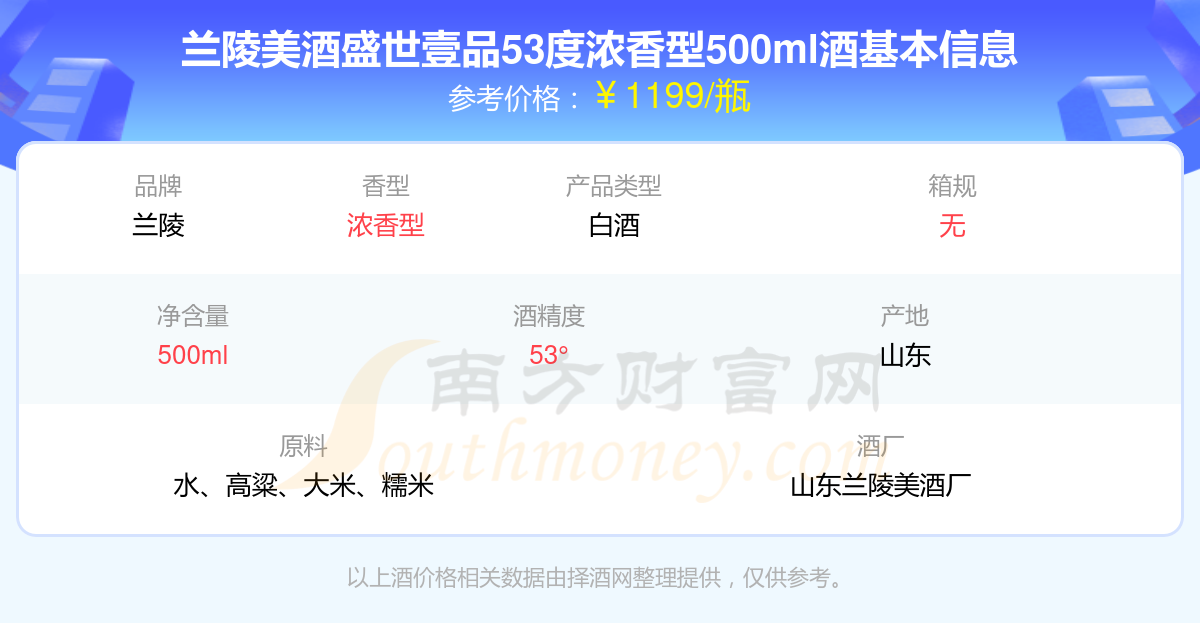 兰陵美酒盛世壹品53度浓香型500ml基本信息