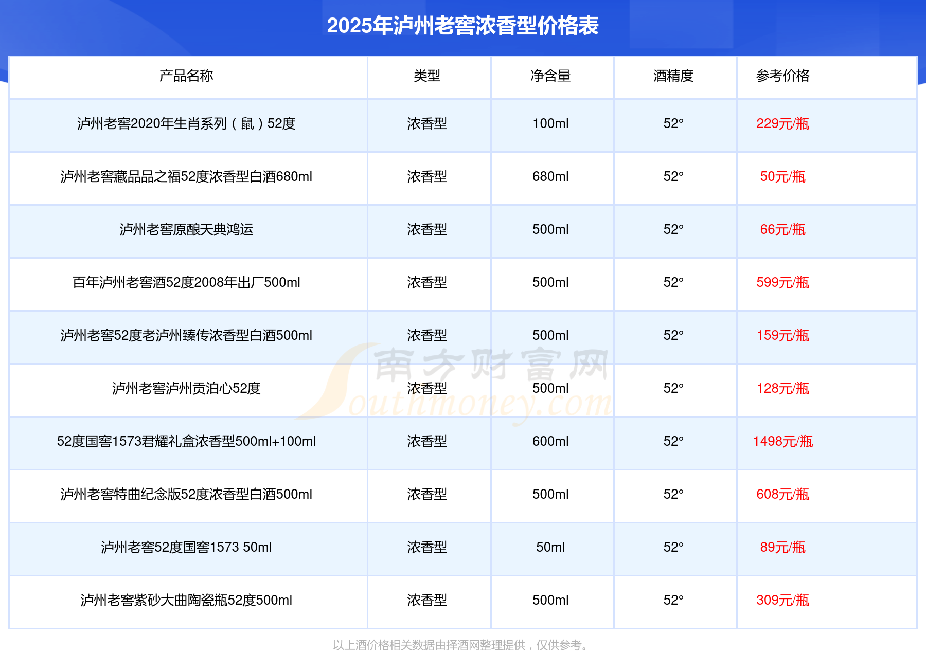 2025年泸州老窖浓香型酒泸州老窖国窖1573春酿鼠兆丰年E 55度、泸州老窖国窖1573生命中的那坛酒55度014、泸州老窖国窖1573春酿鼠兆丰年A 55度、泸州老窖国窖1573生命中的那坛酒55度013浓香型白酒1000ml、泸州老窖国窖1573生命中的那坛酒55度009 1000ml、泸州老窖国窖1573中国品味52度浓香型白酒500ml等最新价格如下: