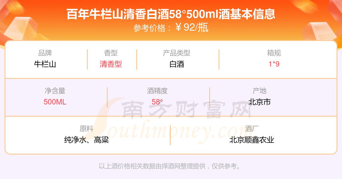 百年牛栏山清香白酒58°500ml基本信息