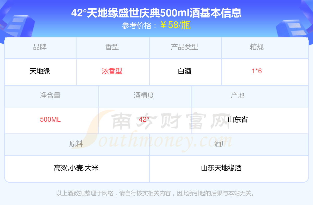 42°天地缘盛世庆典500ml基本信息