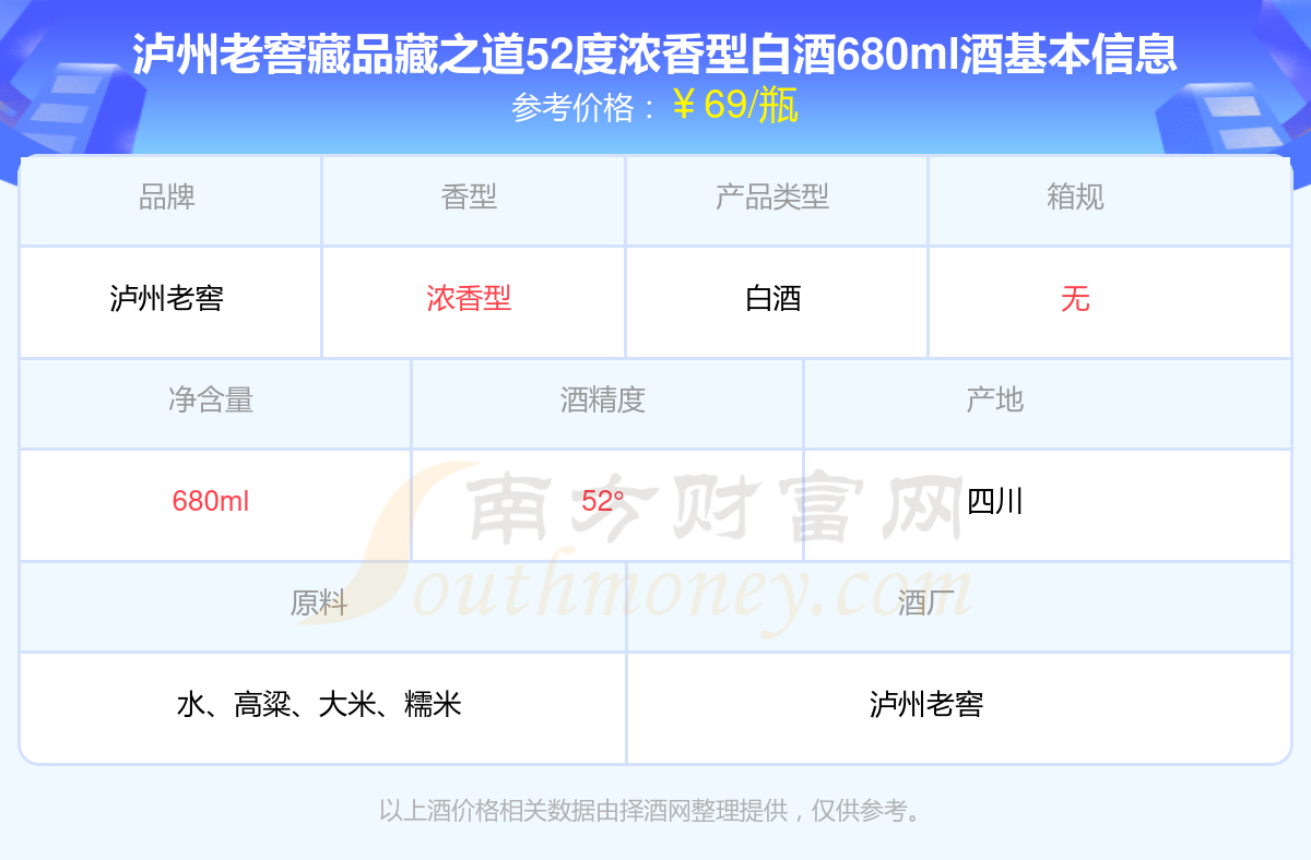 泸州老窖藏品藏之道52度浓香型白酒680ml基本信息