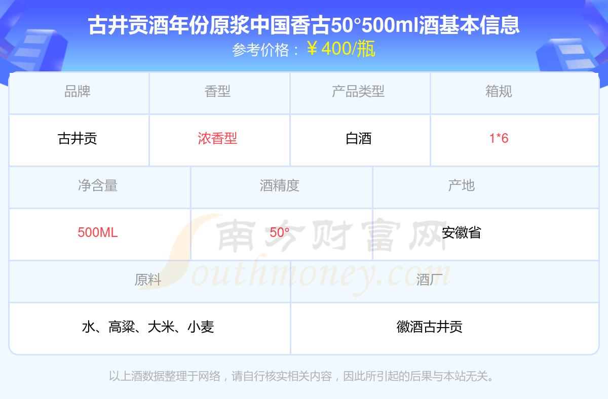 古井贡酒年份原浆中国香古50°500ml基本信息