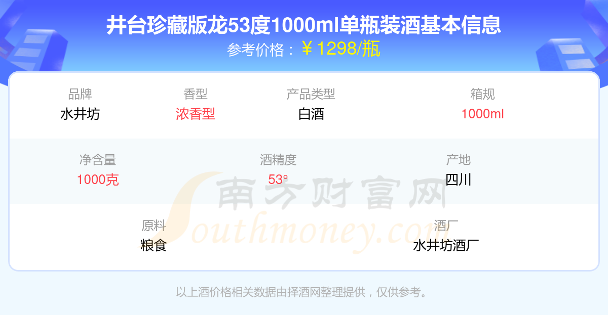 井台珍藏版龙53度1000ml单瓶装基本信息