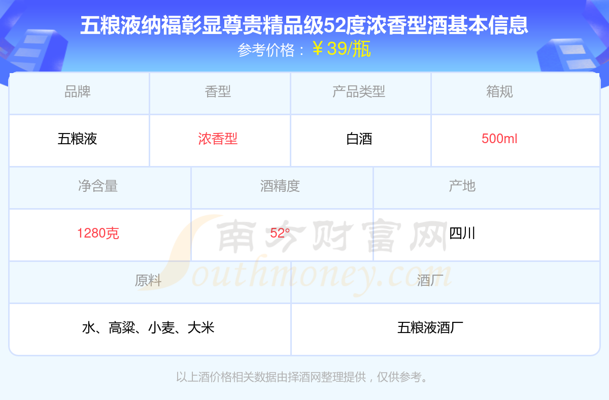 五粮液纳福彰显尊贵精品级52度浓香型基本信息