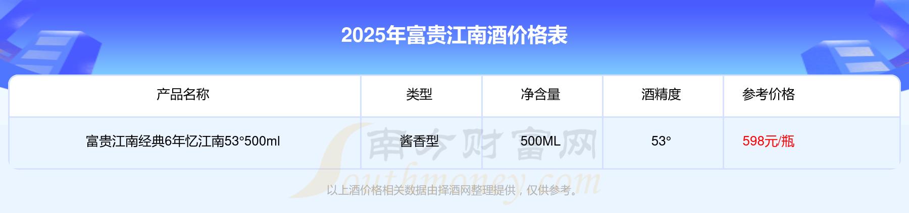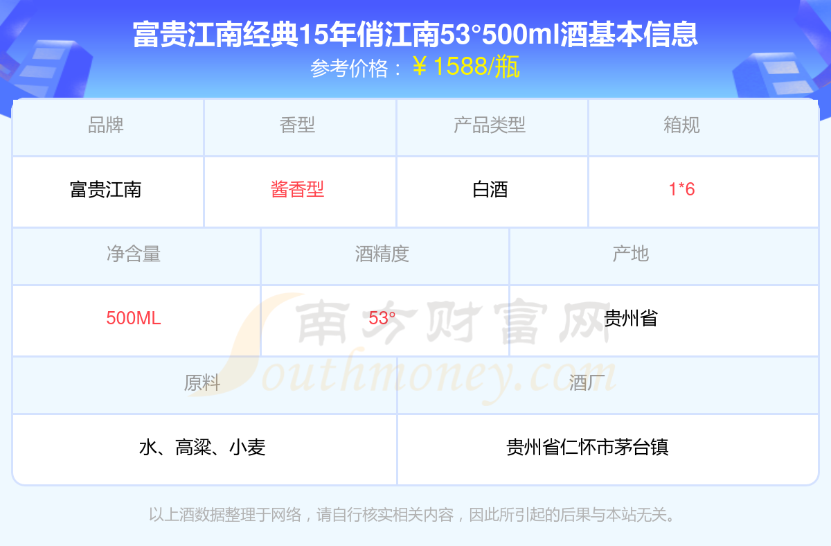 富贵江南经典15年俏江南53°500ml基本信息
