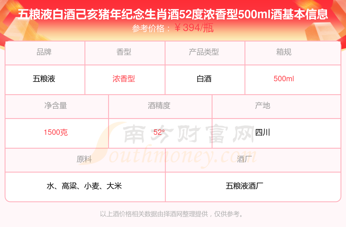 五粮液白酒己亥猪年纪念生肖酒52度浓香型500ml基本信息