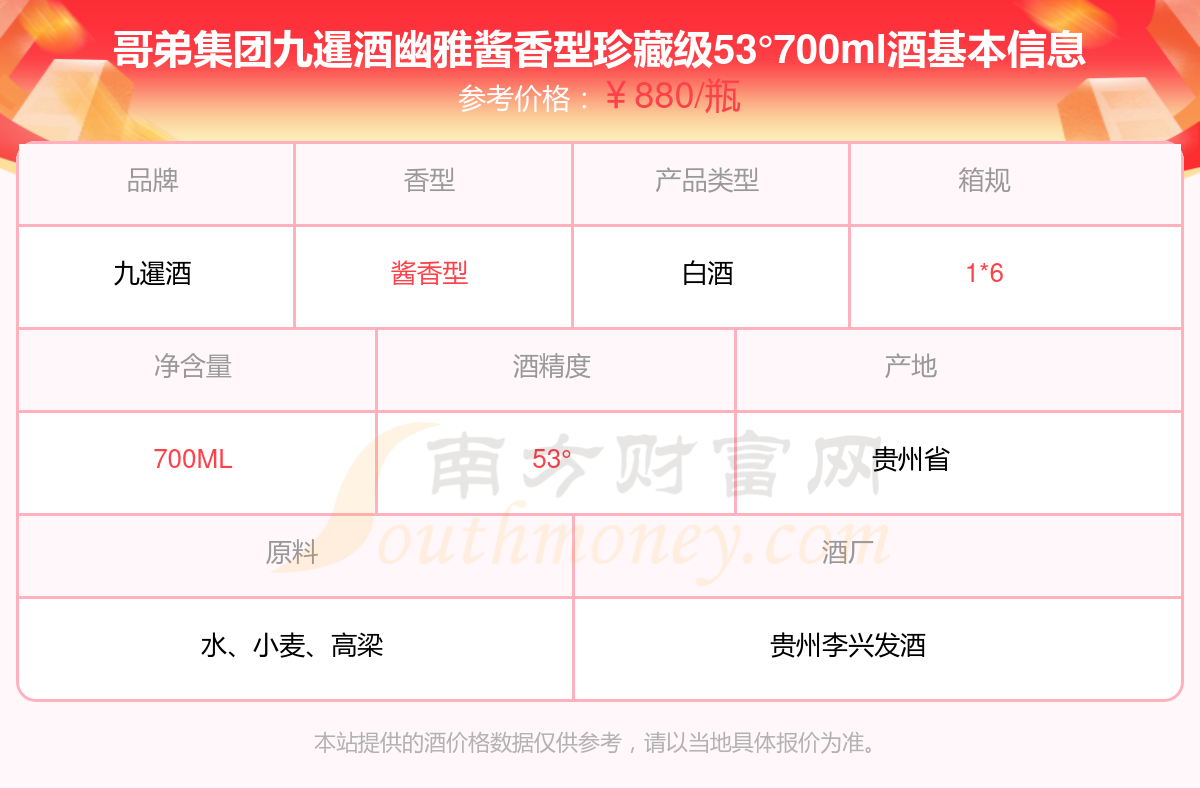 哥弟集团九暹酒幽雅酱香型珍藏级53°700ml基本信息