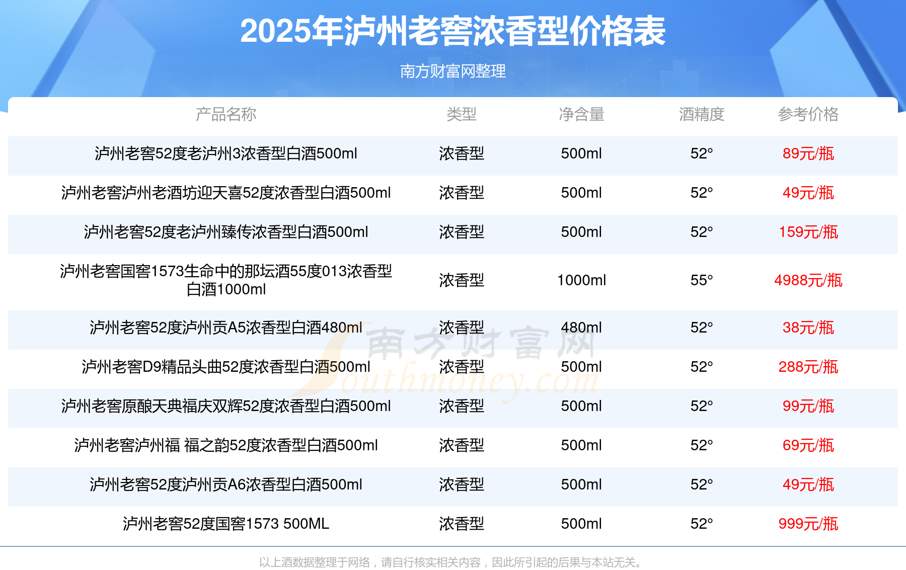 2025年,泸州老窖国窖1573春酿鼠兆丰年E 55度、泸州老窖国窖1573生命中的那坛酒55度014、泸州老窖国窖1573春酿鼠兆丰年A 55度、泸州老窖国窖1573生命中的那坛酒55度013浓香型白酒1000ml、泸州老窖国窖1573生命中的那坛酒55度009 1000ml、泸州老窖国窖1573中国品味52度浓香型白酒500ml等泸州老窖浓香型酒价格如下: