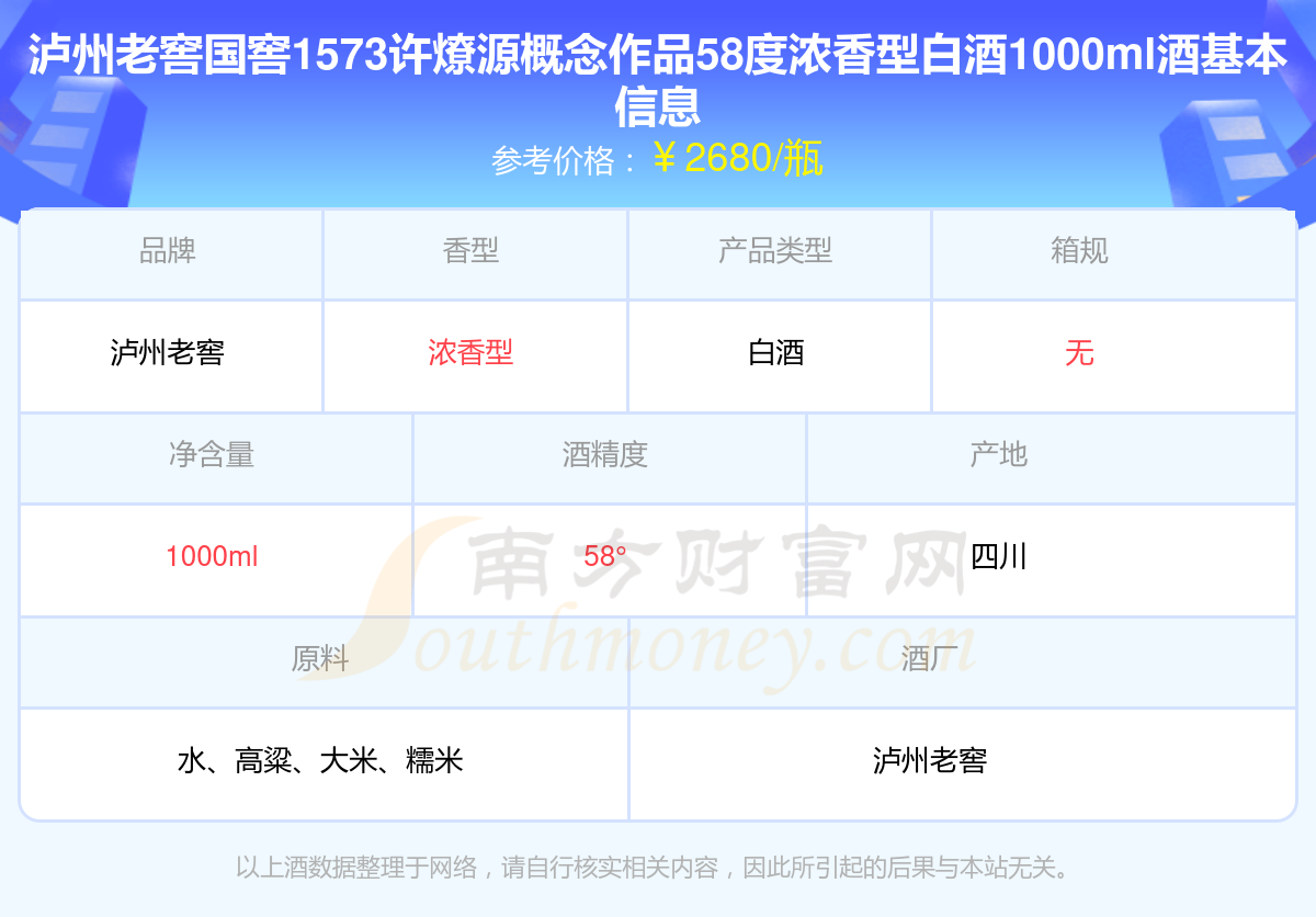 泸州老窖国窖1573许燎源概念作品58度浓香型白酒1000ml基本信息