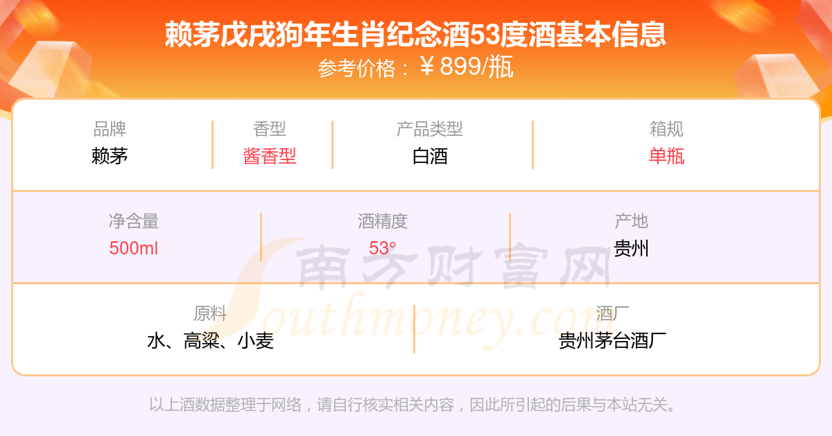 赖茅戊戌狗年生肖纪念酒53度基本信息