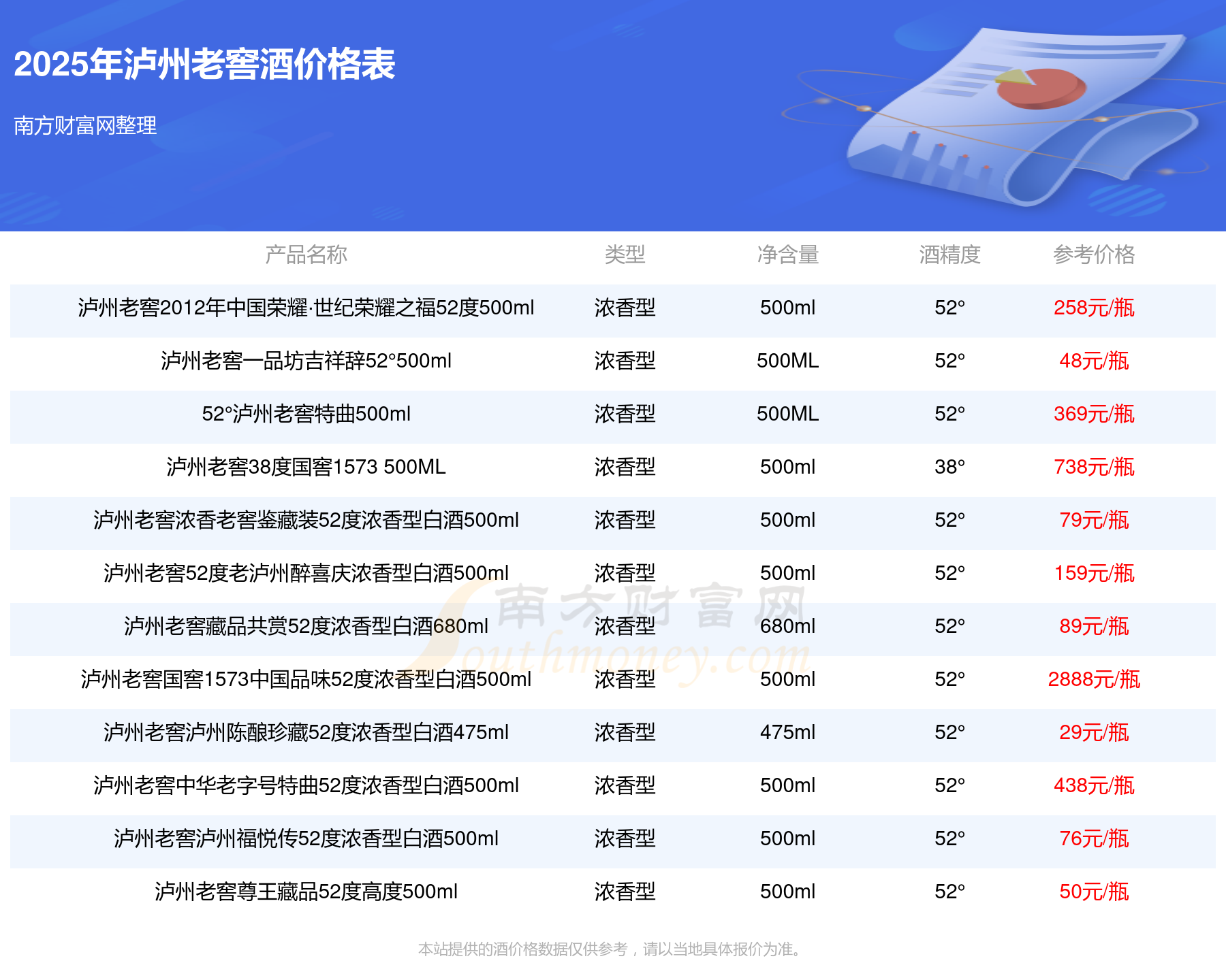 2025年,泸州老窖国窖1573春酿鼠兆丰年E 55度、泸州老窖国窖1573生命中的那坛酒55度014、泸州老窖国窖1573春酿鼠兆丰年A 55度、泸州老窖国窖1573生命中的那坛酒55度013浓香型白酒1000ml等泸州老窖酒价格如下: