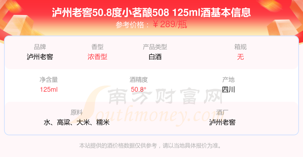 泸州老窖50.8度小茗酿508 125ml基本信息