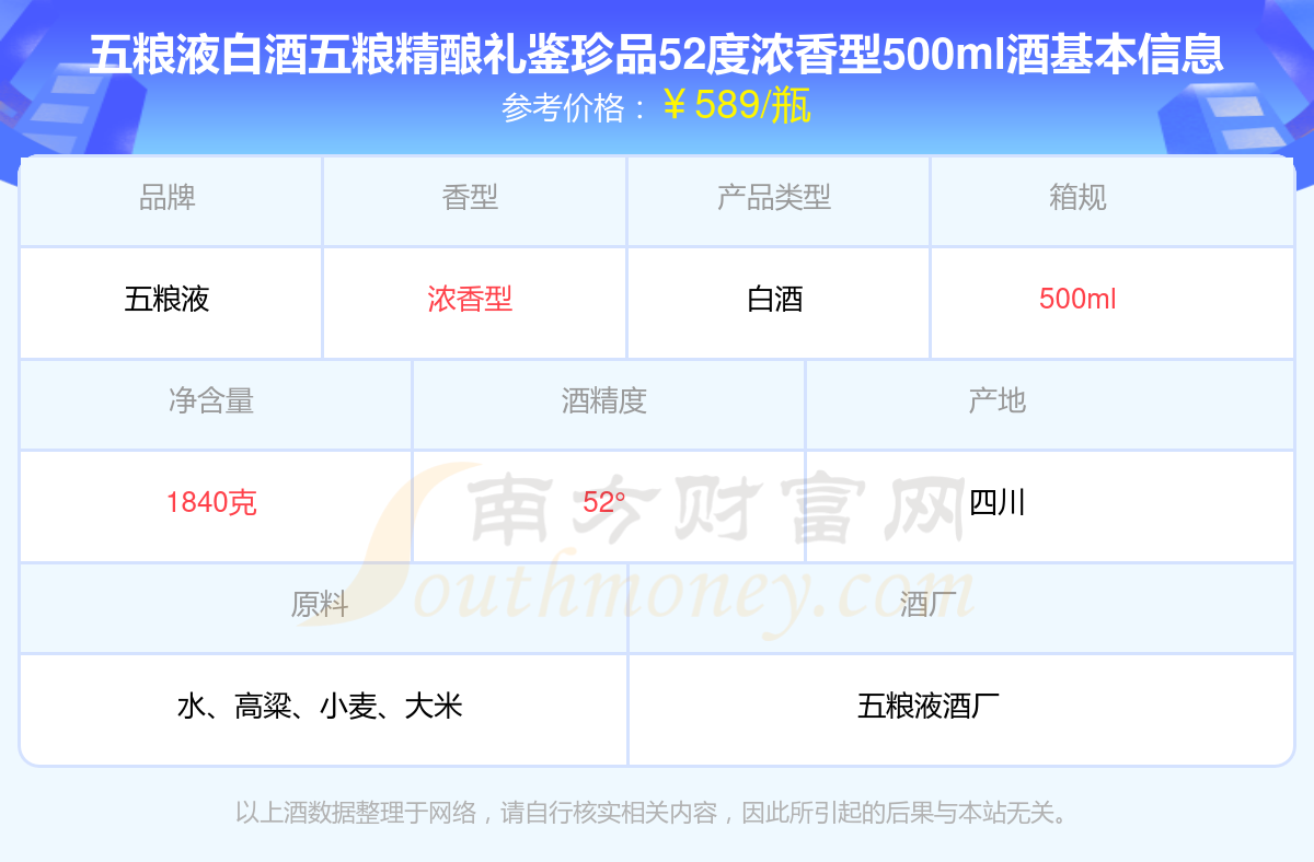 五粮液白酒五粮精酿礼鉴珍品52度浓香型500ml基本信息